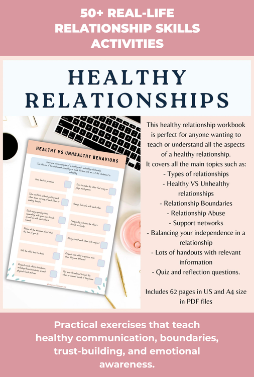 The Healthy Relationships Workbook teaches these skills through simple worksheets and real-life exercises that make learning easy, practical, and empowering.